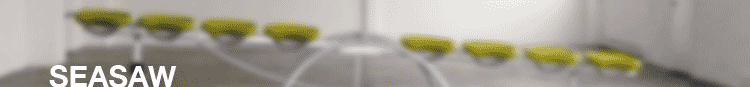 Sitzreihen eines Sportstadions werden auf bogenförmigen Ständern als Wippen montiert; je vier Sitze auf jeder Seite. Im Gegensatz zur üblichen Spielplatzwippe blicken die Wippenden die gleiche Richtung, während sie sich Auf und Ab bewegen.